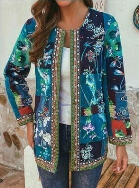 Vintage Ethnic Style Baumwolljacke mit Blumendruck ----- Hot Sale