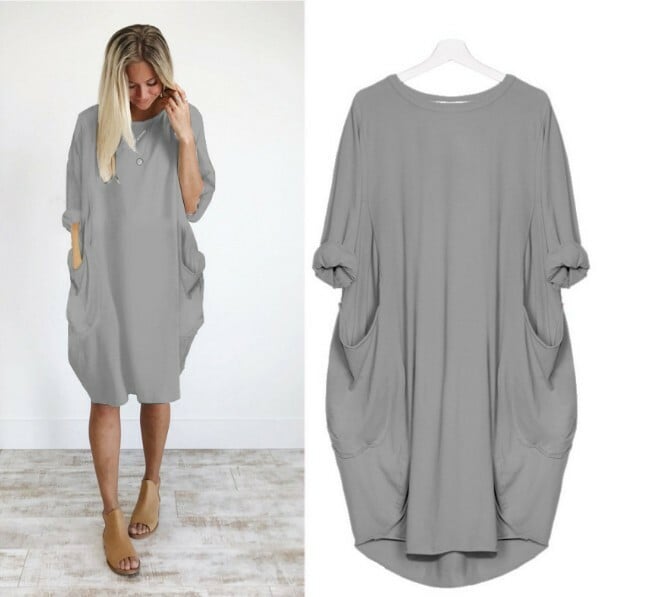 2021 Casual Loose Pocket Langarmkleid🔥🔥
